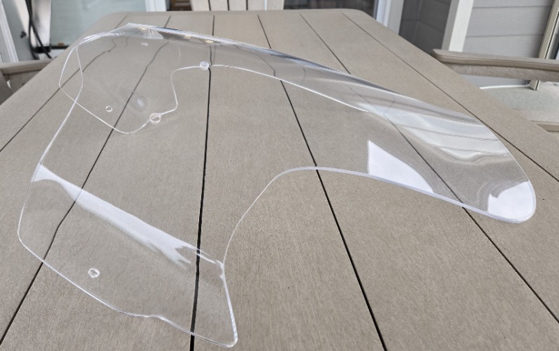 This is a Cee Bailey’s windshield made from aircraft grade acrylic 3/16”/4.7mm thick. It mounts using the stock mounting hardware (four across the front and on each fairing side). It measures 18” from the top of the low beam side of the headlight to the top of the windshield. Very good condition. $50 Located in Kelowna.