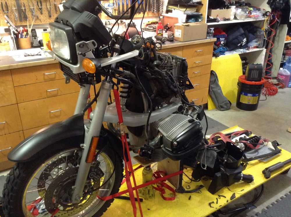 Not today, but over the winter, I did a pretty extensive re-build of the new to me 1995 R1100GS that I acquired last spring. I bought it with 30,000 miles on the clock and put over 5000 miles on it last summer (loving every minute). On my last day of insurance in mid-October, one of the driveshaft u-joints experienced a catastrophic failure while I was tooling around Kelowna for one last ride before putting the bike to bed for the winter. I returned home with the bike on a flatbed BCAA truck! Fortuitously, only the day before I had had it on top of Apex Mountain in the snow, so in a way I was lucky in my bad luck! Anyway, I spent the winter learning how to wrench on the bike, and did the following (in no particular order):