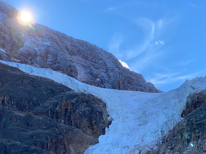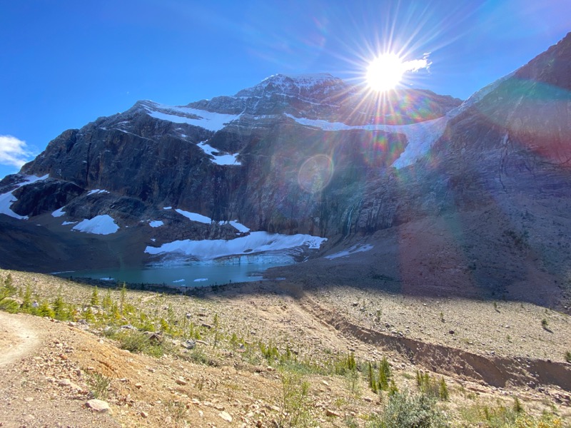 After town I made the trek up to one of my favourite spots. Edith Cavell -- I was going to hike to the meadows but it was a tad late in the day by now so passed. I did have a good yak with a couple of young guys heading out for a 5 day hike. Their packs looked a tad too heavy for my skinny legs to carry. I think a Moto to carry camping gear is way more civilized.