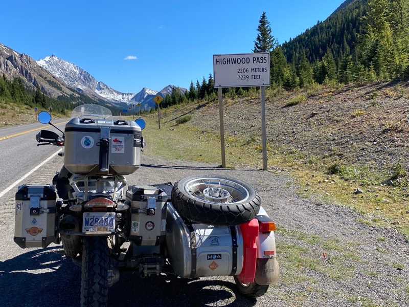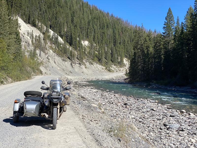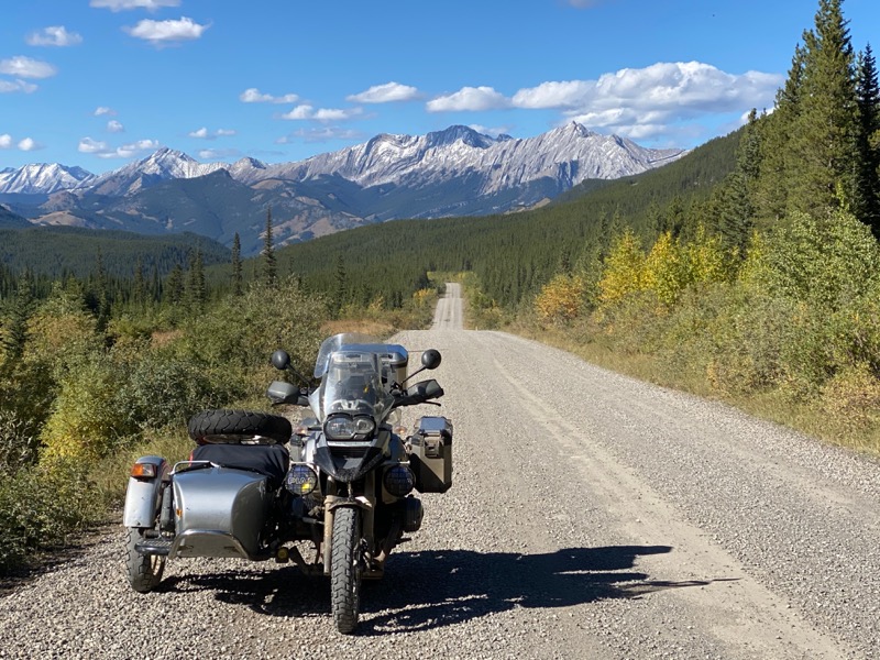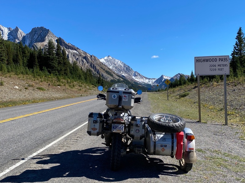 Once on pavement, I can start to make up time, but not before a stop for gas and a check in with Kathy, I have been out of Cell coverage for 48 hours. So west on Highway 1a and then up over highwood. Thinking there is fuel at where the ski hill is, Kananaskis ?? I pass on the fuel at the start. Hmmm I had forgotten that it is 10 k further on. In the mean time I am calculating my range as I know my route is going to use most of my tank up. My range with this rig has me doing this more often than not. Kind of why I have the new GSA as a tug for the new one that is in the works. Any way I get side tracked.