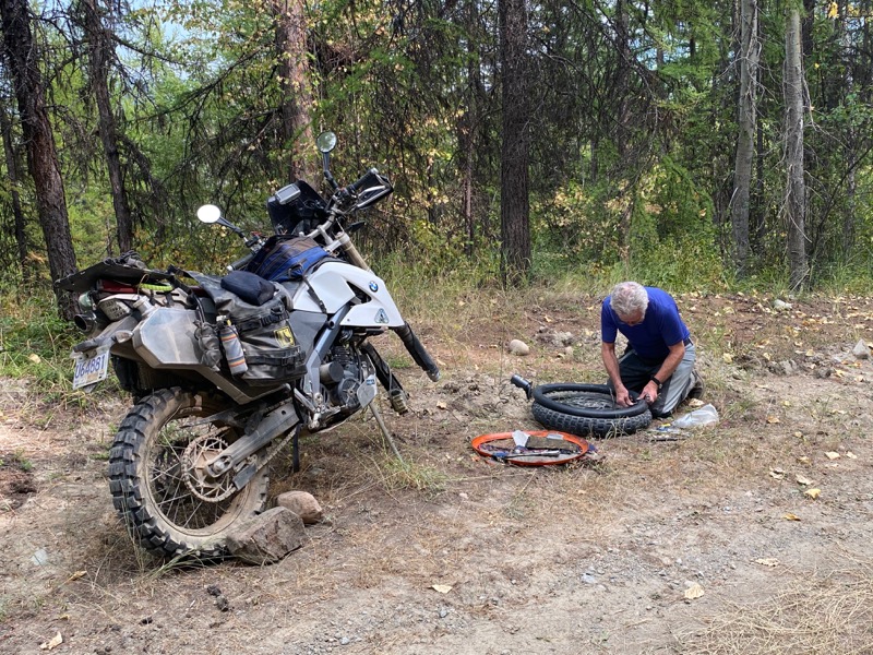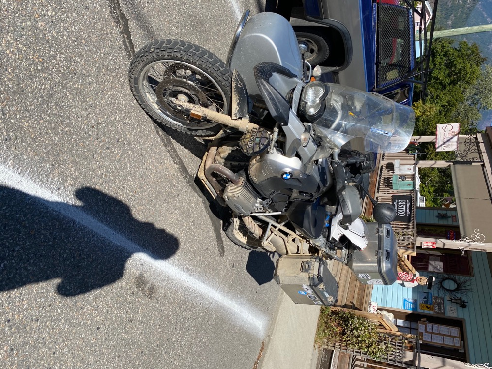 As I bounce along the 30 k or so from Whiteswam lake to Canal Flats I start to calculate how much time is left in my day. Oh road to the left where dose it go, quick check of the map and it leads to Premier Lake. Ok I'm in. Gets nasty for a bit but I persist. Turns out I'm on the old bit and I should have turned sooner. Still it takes me where I want. Of course now I am in Southern BC I have to stop and strip off some layers. It's getting warm. I stop in Kimberly for a late Lunch, early supper. Now how do I get to Midway from Kimberly and avoid Highway 3. Hmmm, Gray Creek to Crawford bay, Stay at Toad Rock, Up to Nakusp, Needles, Edgewood, Take the Granby down to Grandforks, hey I might be there before Beer O'clock . sorry not may pictures, just too busy moving