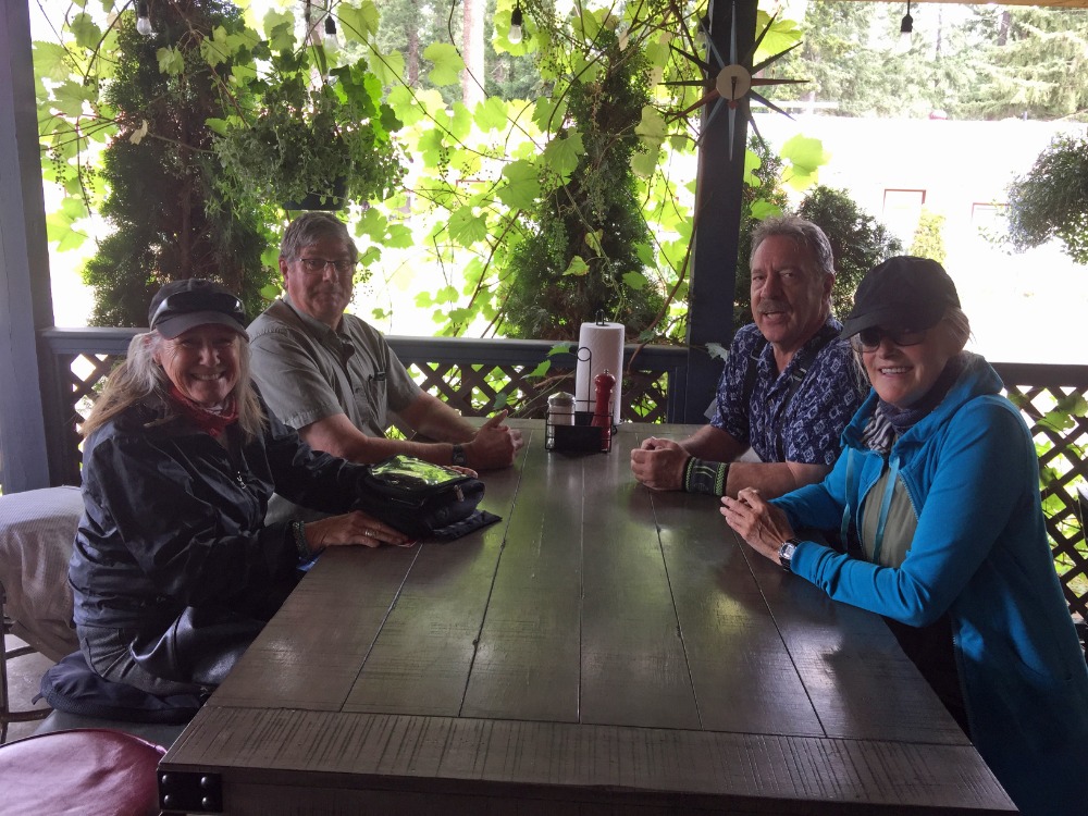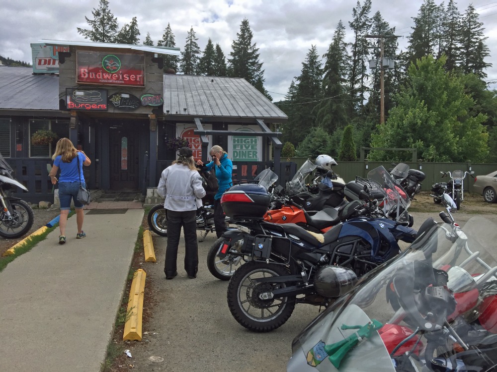 After a couple of reschedules, we finally got our ride in to the High Five Diner. John, Diane, Heather and I met at Armstrong around 8:30 and after a coffee departed at nine. We followed our planned route (in the first post) and the weather was perfect. We dealt with about 10 km of good gravel on the Kamloops-Shuswap Rd. Ron met us in Kamloops then led us up to Little Fort. Mike and Janice were already there enjoying their lunch. I didn't get a photo of them before they headed home.