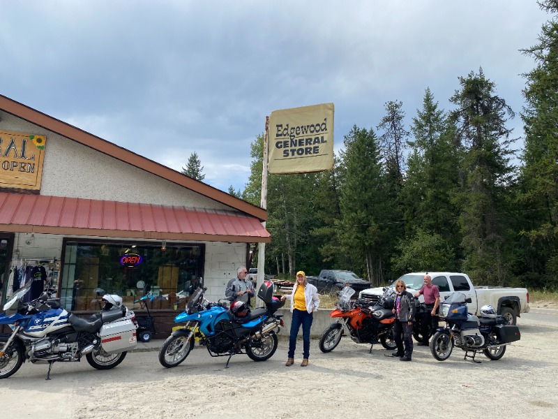 Well the day didn't go as originally planned.  Due to some morning complications we didn't meet until 1:00 in Lumby. Glen, Carrie and Emery met up with Heather and I at the Esso/Tim Horton's.  This was the perfect size group for a ride like this.  From there we had a great ride out to Edgewood on Hwy 6.  Aside from working our way through a few slow vacationers, it was a great ride.  The weather was perfect with the temp dipping down to around 23C at the top of Monashee pass then warming up to 30C in Edgewood.  We paid an obligatory visit to the Edgewood General Store where we picked up a few snacks.