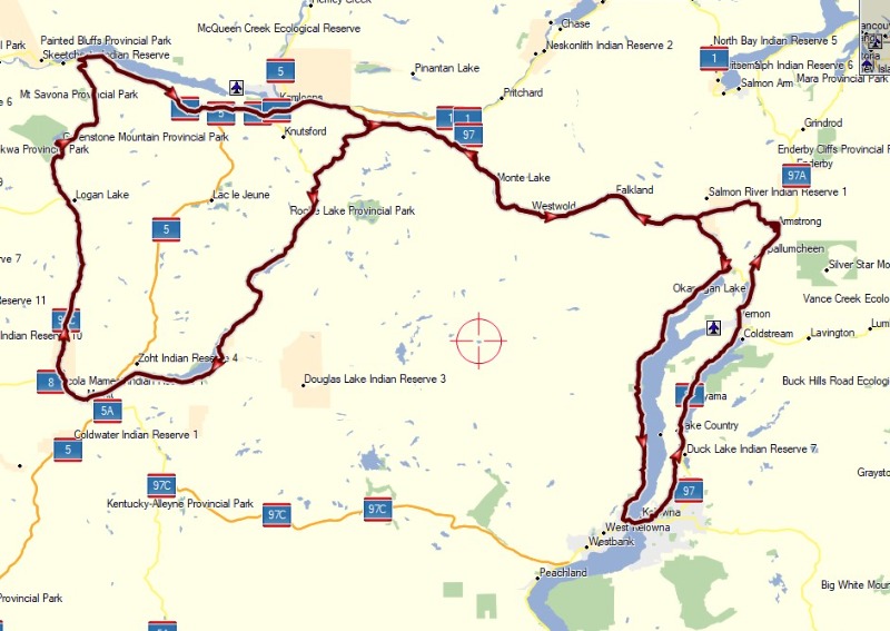 - Hwy 1 back through Kamloops to Barnhartvale Rd